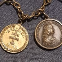 Múlt évben került hozzám ez az érdekes frakklánc egyik piacozás közben. A frakklánc a Ferenc József-rend nagykeresztjéhez tartozik. Erre két miniatűrt helyeztek, melyek az elhelyezkedés miatt a Szent István-rend középkeresztje és a Koronás Arany érdemkereszt. Lehet, hogy több darab is volt a láncon, lehet, hogy előrébb került, de így került hozzám.