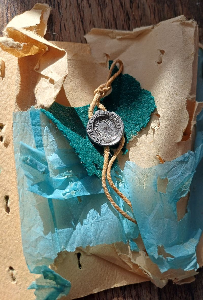Egy pénzügyőr egyenruhában volt benne.(Soha nem hordott darab.Abból gondolom, mert a nyak részen lógott. Nem lett volna kényelmes hordani). A ruha menthetetlen volt A plomba viszont szépen megmaradt. Az egyenruhát az évek meg a molyok sajnos nem kímélték. A zöld posztóból se sok maradt. Az egyenruha gyártója Trunkhahn volt akik a csendőrségnek is szabtak egyenruhát.