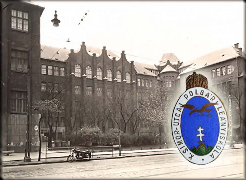 Maga az iskola 1913 és 1970 között a fiú- és leányoktatást elkülönítve szervezte. Ez után vált koedukálttá. A jelvény a leányiskola jelvénye, mint az a feliratból kiolvasható. A fotó viszont valamikor a 50-es vagy 60-as években készülhetett. A rajta látható motorkerékpár mintha egy Pannonia lenne...