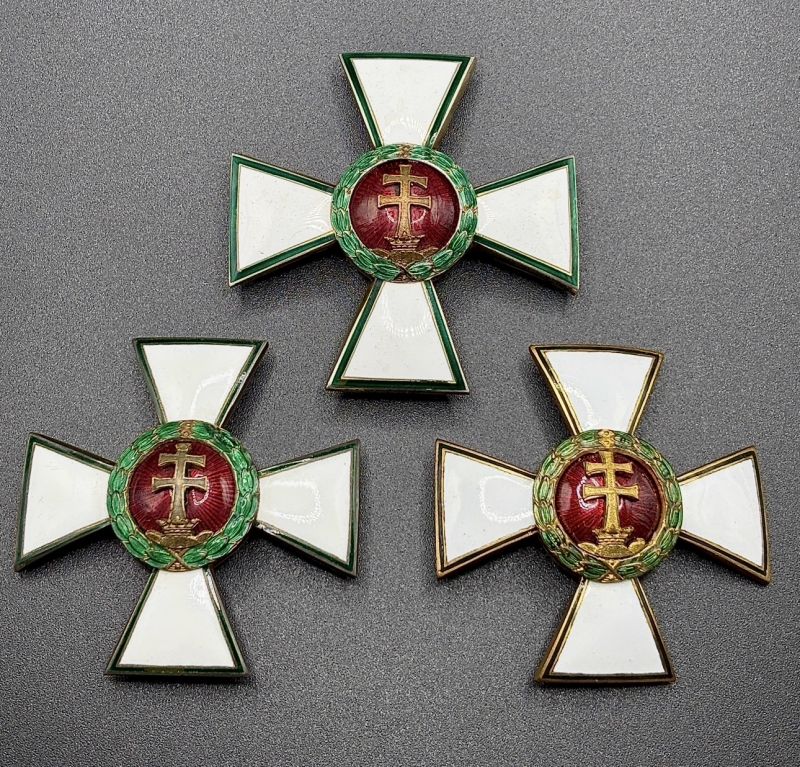 Gyűjteményem egyik legkedvesebb része bővült a napokban, a fotón három különböző típusú III. osztályú Magyar Érdemkereszt látható. A legfelső ezüst anyagú és 52 mm széles kereszt szerintem az egyik legritkább. Méretüket tekintve egyébként mind három eltérő. Hátoldalán az évszám 1922, mindegyik darabnál.