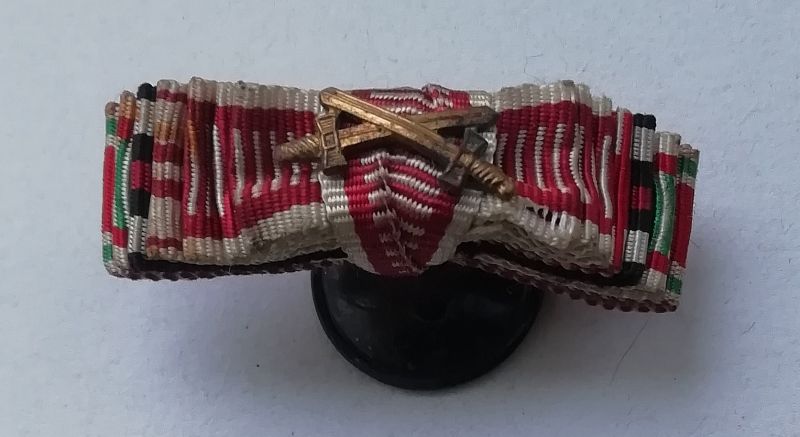 4 emlékérem -Bolgár, Magyar, Német, Osztrák, Csapatkereszt, 3 vitézségi szalag szépen csokorban, kardos lezárással.